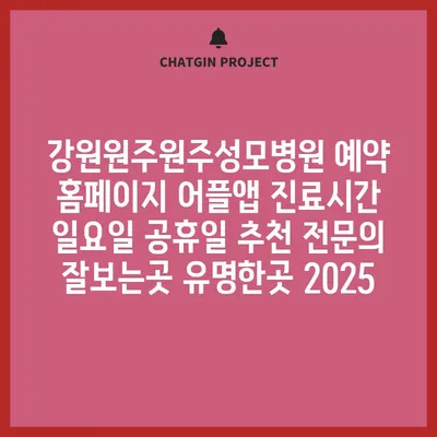 강원원주원주성모병원 예약 홈페이지 어플앱 진료시간 일요일 공휴일 추천 전연락 잘보는곳 유명한곳 2025 에 대해 자주 묻는 질문 TOP 5