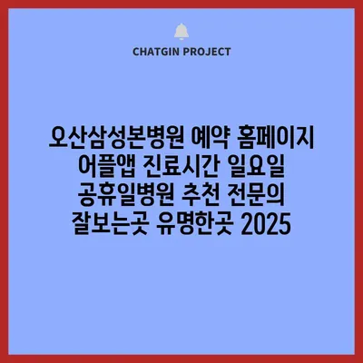 오산삼성본병원 예약 홈페이지 어플앱 진료시간 일요일 공휴일병원 추천 전연락 잘보는곳 유명한곳 2025 에 대해 자주 묻는 질문 TOP 5