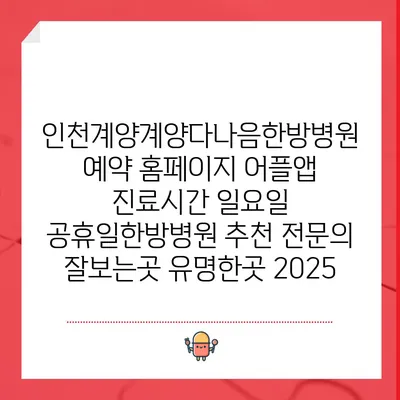 인천계양계양다나음한방병원 예약 홈페이지 어플앱 진료시간 일요일 공휴일한방병원 추천 전연락 잘보는곳 유명한곳 2025 에 대해 자주 묻는 질문 TOP 5