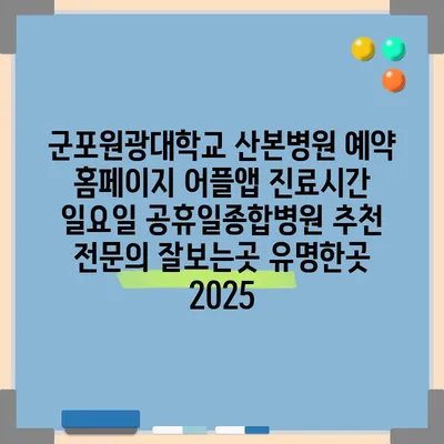 군포원광대학교 산본병원 예약 홈페이지 어플앱 진료시간 일요일 공휴일종합병원 추천 전문의 잘보는곳 유명한곳 2025