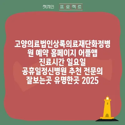 고양의료법인상록의료재단화정병원 예약 홈페이지 어플앱 진료시간 일요일 공휴일정신병원 추천 전문의 잘보는곳 유명한곳 2025