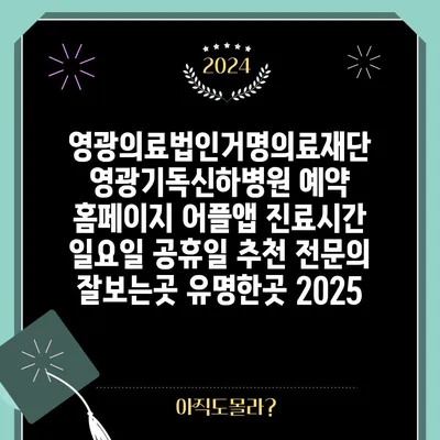 영광의료법인거명의료재단 영광기독신하병원 예약 홈페이지 어플앱 진료시간 일요일 공휴일 추천 전연락 잘보는곳 유명한곳 2025 에 대해 자주 묻는 질문 TOP 5