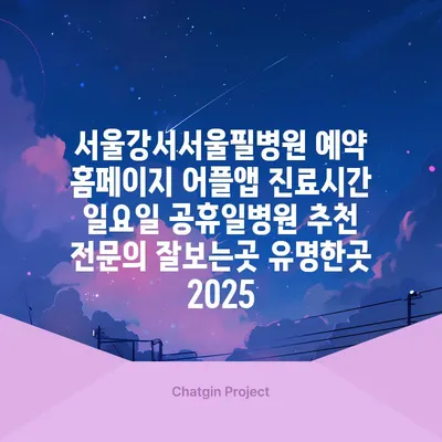 서울강서서울필병원 예약 홈페이지 어플앱 진료시간 일요일 공휴일병원 추천 전연락 잘보는곳 유명한곳 2025 에 대해 자주 묻는 질문 TOP 5