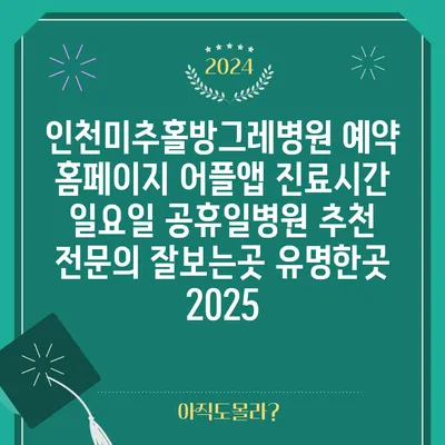 인천미추홀방그레병원 예약 홈페이지 어플앱 진료시간 일요일 공휴일병원 추천 전연락 잘보는곳 유명한곳 2025 에 대해 자주 묻는 질문 TOP 5