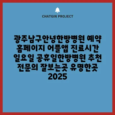 광주남구안녕한방병원 예약 홈페이지 어플앱 진료시간 일요일 공휴일한방병원 추천 전연락 잘보는곳 유명한곳 2025 에 대해 자주 묻는 질문 TOP 5