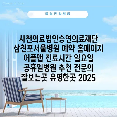 ✅ 서울영등포한림대학교 강남성심병원의 진료시간과 예약 방법을 상세히 알아보세요.